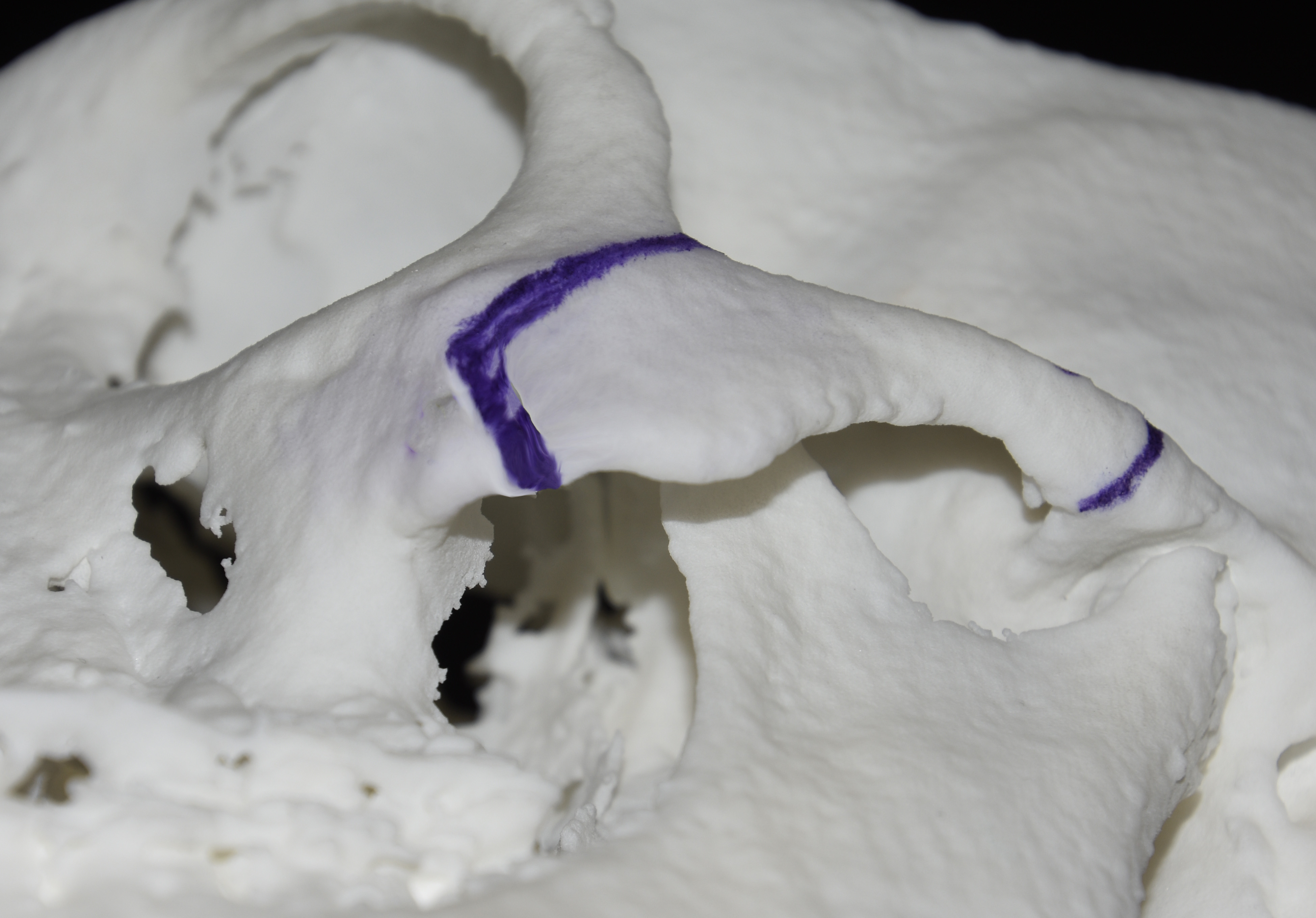 3D Cheekbone Reductionk Osteotomies skull model below view Dr Barry Eppley Indianapolis