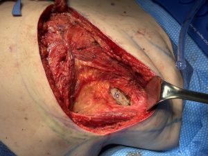 Incision direction: Side-to-side, typically along the bra line or lower back