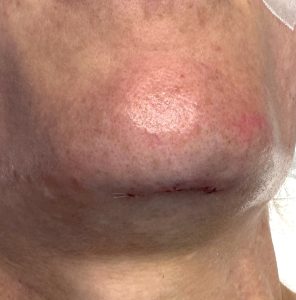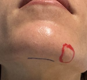 Bony bumps along the inferior border of the chin (mandible) are fairly common and can cause visible chin asymmetries with a longer ‘bump’ side. These are usually normal anatomical variations of a developmental origin and are rarely indicative a of more major jaw abnormality.