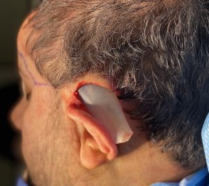 postauricular incision for custom extended temporal forehead implant Dr Barry Eppley Indianapolis