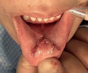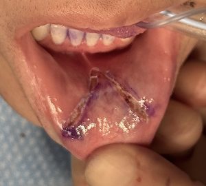 - Uses a V-shaped incision made on the inside (mucosa) of the lip (upper, lower, or both).