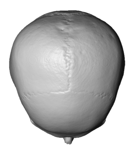 - In adults, the skull bones are fused, so the shape is stable and non-progressive