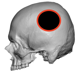- Skull bone thickness (3 to 4mms reduction ion each side