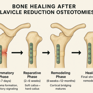 Reduction osteotomies of the clavicle for shoulder reshaping (shoulder narrowing or “desquaring”) follow the same core biological principles as fracture healing, but with nuances related to clavicular anatomy, vascularity, and rigid fixation. Healing typically progresses through four well-established phases: