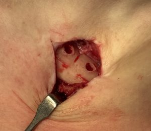 - Examination of the osteotomy sites showed a barely perceptible line with complete, solid bridging bone, consistent with primary bone healing.