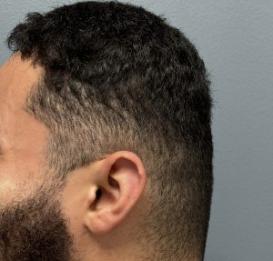 It’s a cosmetic procedure that adds projection and roundness to the back of the head by increasing skull contour. Hair covers the incision, so the change is shape-based rather than “scar-based.”