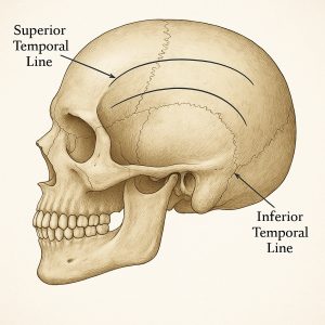 What makes this region unique is the presence of thick, variable temporal muscle overlying complex bony contours. The anterior forehead-temple junction has a concave bony shape, whereas the bone near the ear is convex. These anatomic factors divide temporal augmentation into: