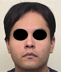 A young male patient sought a significant temporal augmentation to substantially widen the sides of his head. He habitually styled his hair to make his head appear wider and demonstrated his natural head narrowness by flattening his hair under a stocking cap.