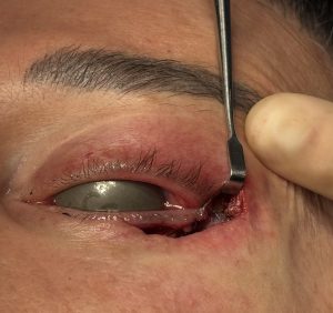 - Placed through a limited lower eyelid incision microscrew fixation and lateral canthopexies are used for implant stability and lower eyelid support.