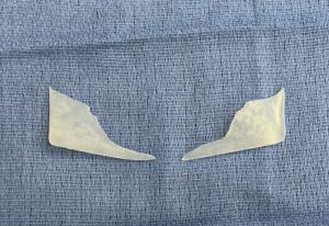 Custom jaw angle implant overlays are patient-specific implants designed to sit on top of an existing mandibular angle implant rather than replacing it. They are used to enhance jaw angle definition and/or correct asymmetry resulting from limitations in the original implant’s design, size, or placement.