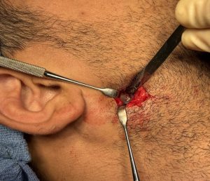 - Intraoral or external incisional approach