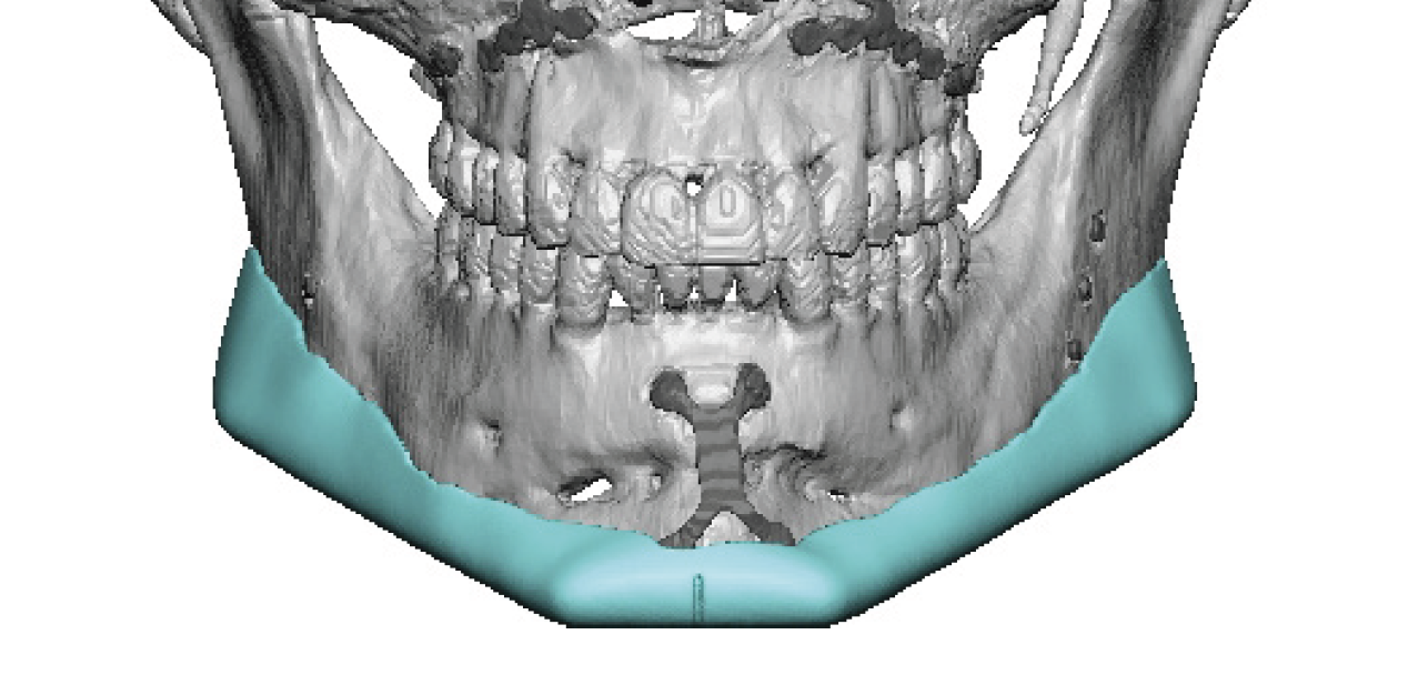 - The implant restores or enhances the 3-dimensional shape around the newly lengthened chin.