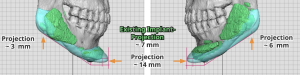- “Disconnected” look between chin and jaw angle implants