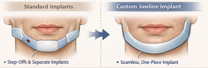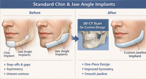 A custom jawline implant replacement is often a smart move for patients who already have standard (off-the-shelf) chin and jaw angle implants but want a continuous, connected and enhanced jawline result.