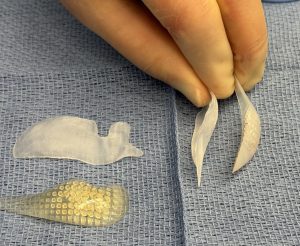 In replacing the standard cheek implants with the custom midface implants the significant change in the shape of the implant (concave rather than convex) could be appreciated by comparing their side profiles.