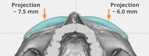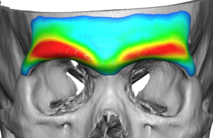 - Thickness depends on the type of brow bone look the patient wants which may or may not exceed the medial brow bone prominence