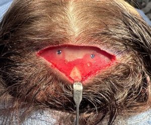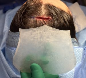 - Most custom forehead implants must extend much further back on the top of the skull than the frontal hairline for a smooth contour.
