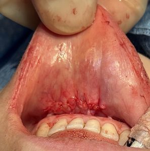 • Fold tethered to mentalis or dermis