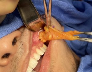 - Removes part or most of the buccal fat pad through a small incision inside the mouth