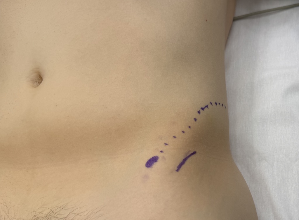 left iliac crest implant incision marking front view Dr Barry Eppley