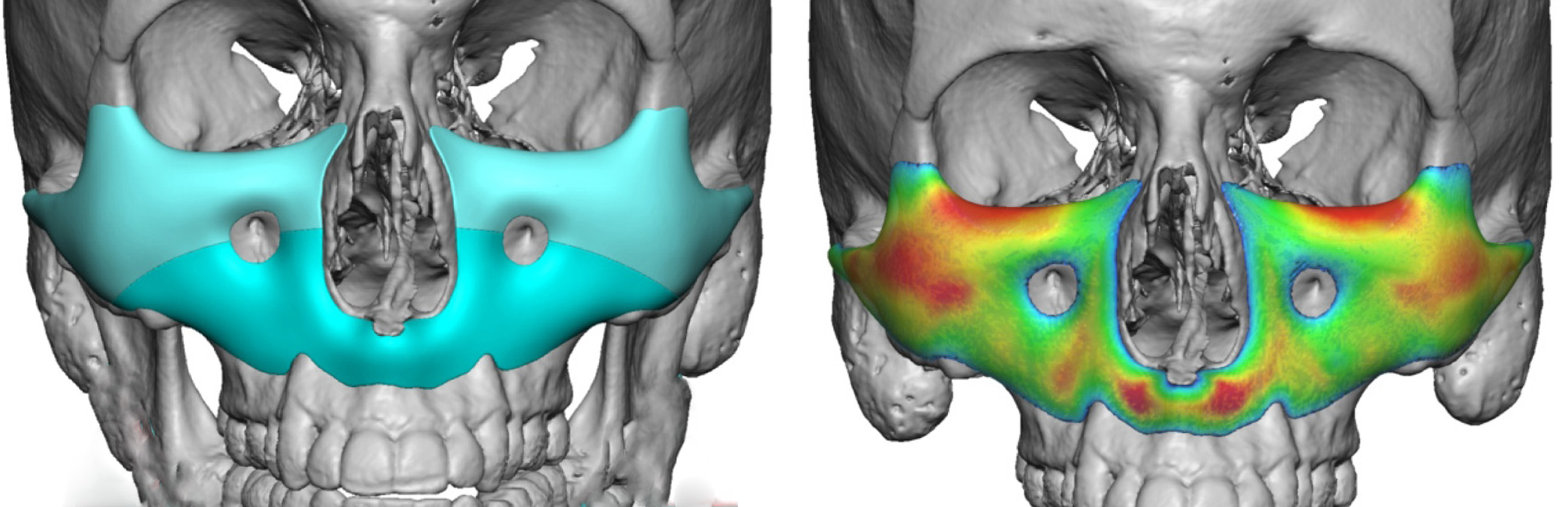 Two Piece Custom Midface Mask Implant projection thicknesses front view Dr Barry Eppley Indianapolis