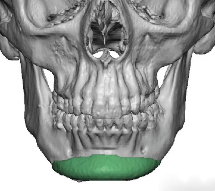 female broad chin implant 3D CT scan front view Dr Barry Eppley