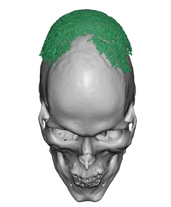 bone cement skull reconstruction 3D CT scan top view Dr Barry Eppley