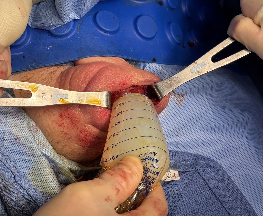 funnel placement of custom testicle implant Dr Barry Eppley