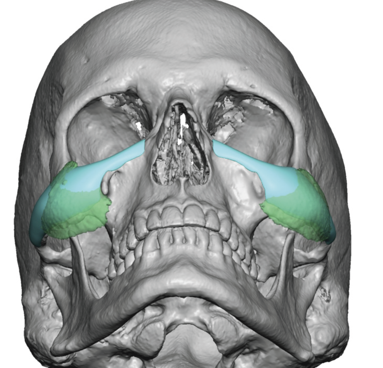 Male customk cheek implants vs standard cheek implants 3D CT scan submental view Dr Barry Eppley Indianapolis