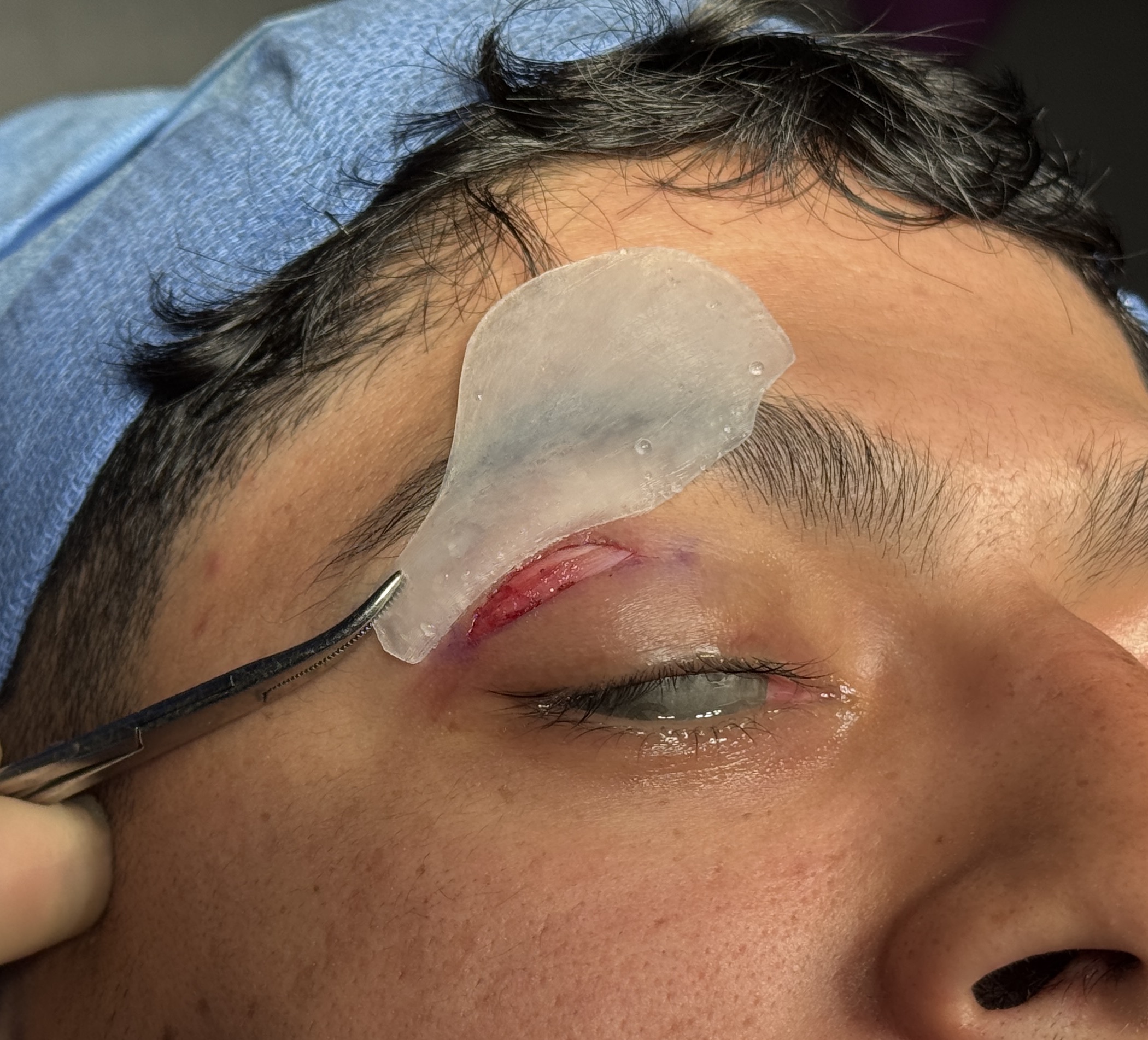 right custom forehead-brow bone implant and incision Dr Barry Eppley