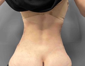 This petite, thin female patient desired maximal waist narrowing through rib removal. She had previous breast and buttock implants and a history of hip implants, which were later removed due to infection. Owing to her thin frame, both the iliac crests and the ends of rib 10 were prominent, with greater prominence of rib 10 on the right side.