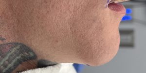 This patient has a prior intraoral chin reduction as part of an overall facial feminization surgery. They felt that no significant changes to the chin were seen. It was still too long, had too much forward projection and was still too wide.