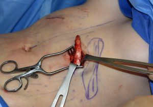 - Vertical splitting (not transverse cutting) of the rectus abdominis muscle is required