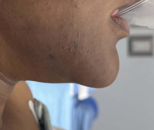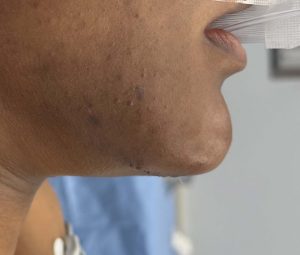 The aesthetic improvement was immediate—the chin appeared less projected and less pointy, restoring a balanced contour.
