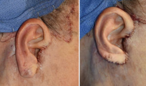 Female Facelift Earlobe reduction result intraop Dr Barry Eppley Indianapolis