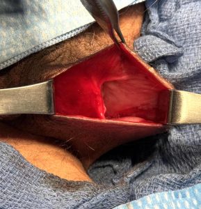 2) Removal of existing testicle implants for larger size replacements that have a lower position in the scrotum requires capsulectomies and pocket expansion.