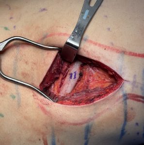 • Rib 10: a 15 cm segment was removed, extending to the anterior subcostal attachment.