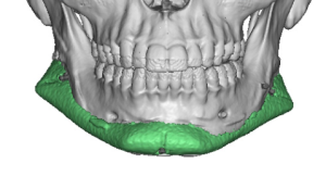A male patient presented with a mild right jaw angle asymmetry eight years after placement of a custom jawline implant. While the overall aesthetic result was satisfactory, the right jaw angle appeared more rounded and less defined compared to the left. A 3D CT scan revealed the right implant positioned approximately 2–3 mm higher than the inferior border of the mandible.
