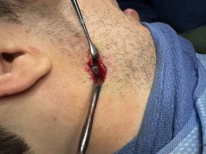 Careful technique is required to avoid injury to the marginal mandibular nerve.